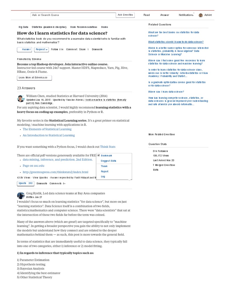 Learn the mathematical and statistical underpinning of data science and business analytics. The data science team at quora are great data science citizens of the community. Best data science and ai certification for working professionals: Build expertise in data manipulation, visualization, predictive analytics, machine learning, and data science. Engineering at quora is a great place to start.